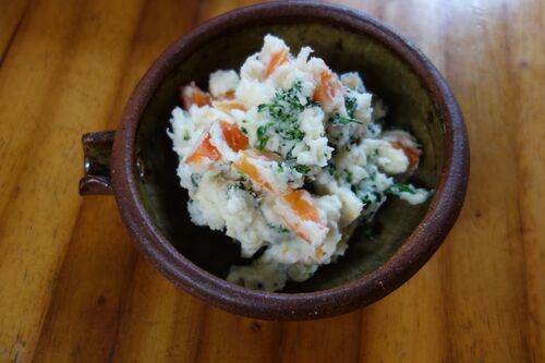 カリフラワー、新玉ねぎ、ジャガイモで春を感じる「白いポテトサラダ」を作ってみました。ジャガイモを潰す際に牛乳を加えることでマッシュポテトのような舌触りになり、白い色が映える仕上がりとなります。 生の玉ねぎは癖があるので、玉ねぎはレンジで水分…