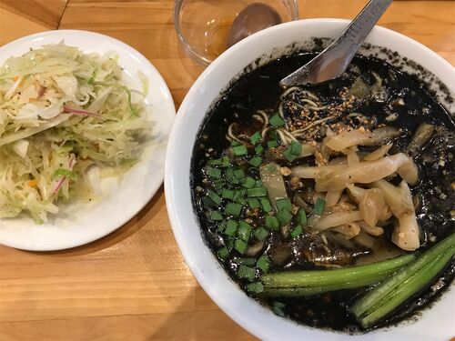 ランチに瀬佐味亭に行く。久々の外食である。 黒坦々麺、ザーサイトッピング。 コールスロー。 外食になかなか行かない時代にラーメンという日常食が、特別食になる。たまに食べる、嬉しいランチである。