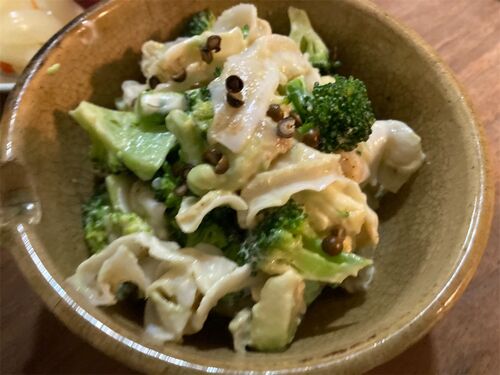 御徒町吉池で買ったホタテのヒモをサラダに。 ホタテのヒモだけ入った500グラムパック、300円程度という安価。 塩でぬめりをとり、今度色々と応用する。 サラダはブロッコリー、アボカドをいれる。レモンを絞り入れ、塩漬けの胡椒をぱらり。 なんととおつな…