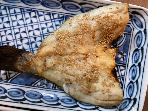 いただいたお手製の味醂干し。魚の種類はおそらく小さなセイゴ。食べていて骨がいっさいないことに気づく。骨抜きまでした、丁寧な自家製味醂干しであった。